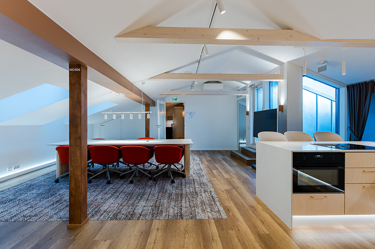 Vuokra sisältää kokoustilan käytön varusteineen, näköalaterassi, astiat, pyyhkeet, pefletit, suihkushampoot ja siivouksen. Keittiössä jääkaapit, astianpesukoneet, liesi, uuni ja mikro.