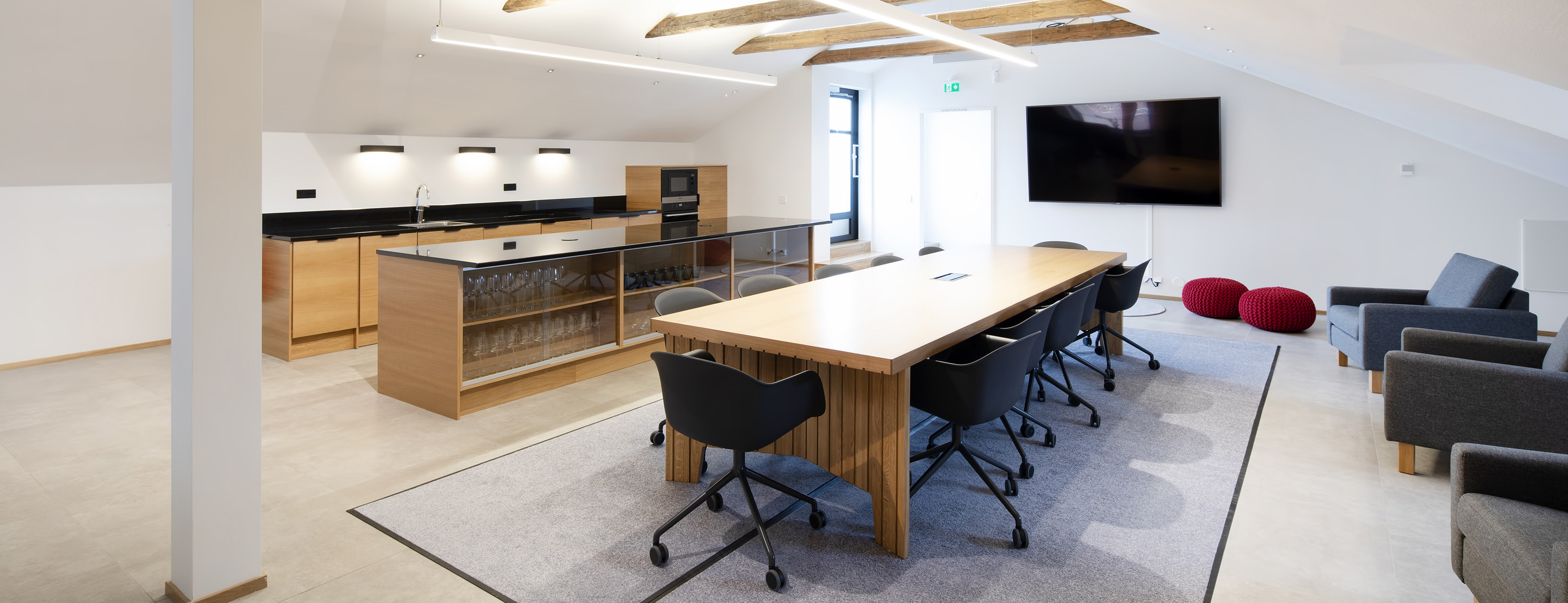 Kokoustilassa on internetyhteys (WLAN) ja TV-näyttö. Kokoustarjoilut voitte hoitaa sujuvasti meidän yhteistyökumppanin kanssa tai itse.